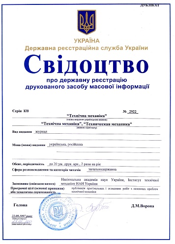 registration certificate for the journal, in accordance with which the journal has the official English title of Technical Mechanics,
